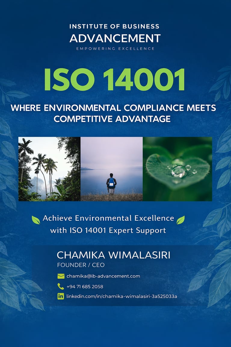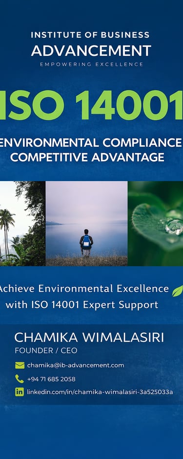 At the Institute of Business Advancement (IBA), we help organisations transform environmental responsibility into strategic business value through expert ISO 14001 Environmental Management System (EMS) consultancy and professional training services.