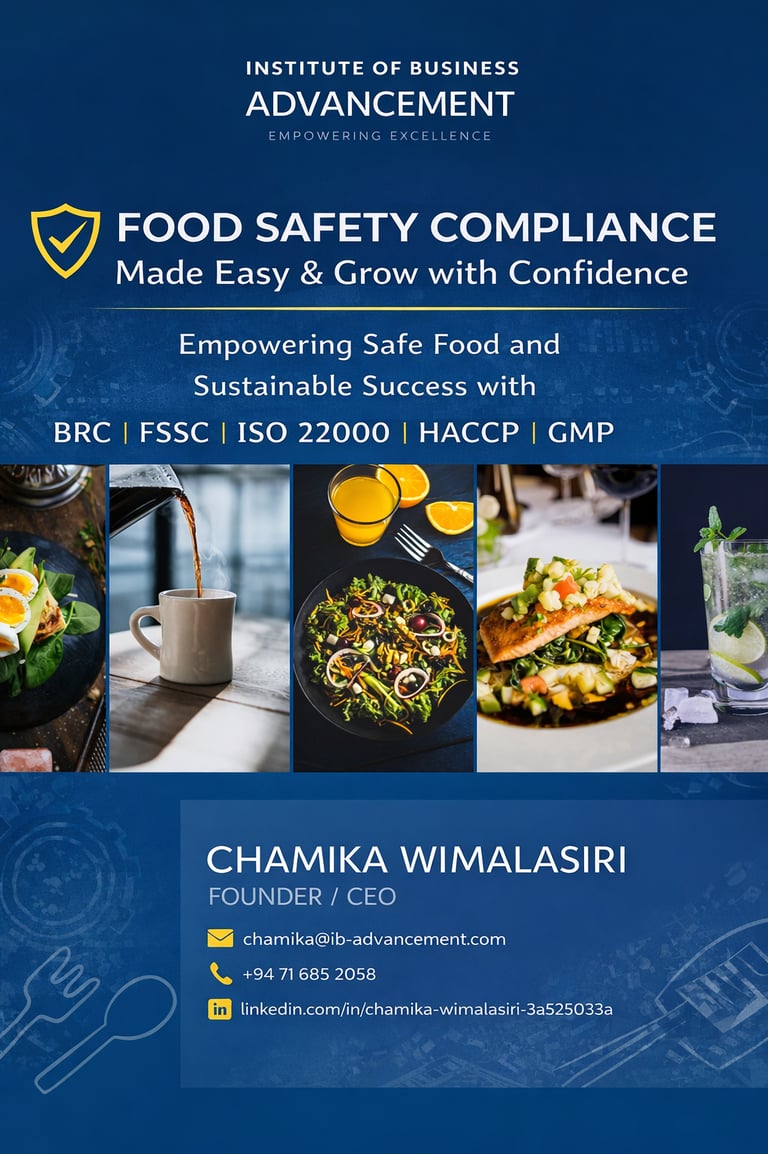 At the Institute of Business Advancement (IBA), we deliver comprehensive Food Safety Management System (FSMS) consultancy and professional training services designed to help food businesses operate with confidence, credibility, and full regulatory compliance.